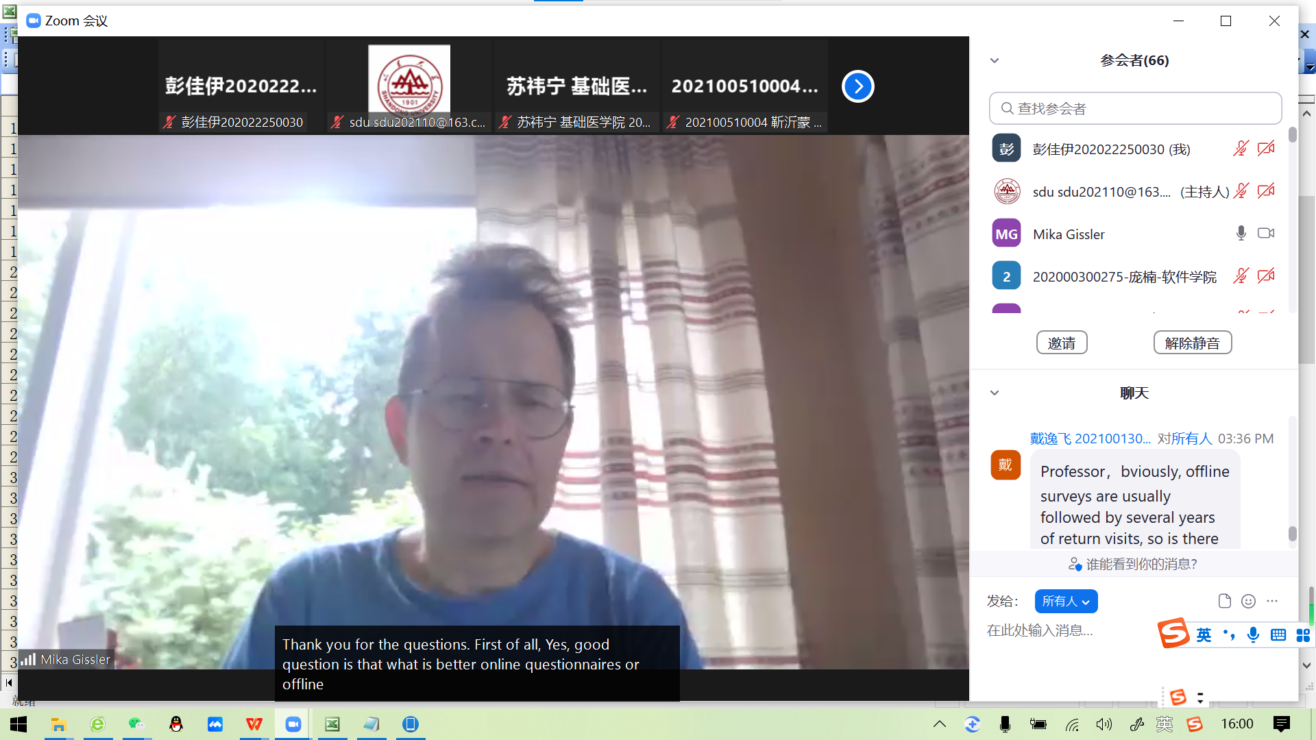 最初几节课,由于对相关知识储备不足以及语言问题,课堂互动较少,课程中后期互动逐渐变多,学生就自己的疑问向教授提问并且积极回答教授的问题,教授也耐心进行讲解。经过本课程的学习,同学们深刻理解了注册登记数据在健康监测中的重要性,认识到登记注册数据对于开展高质量科学研究,提高人民健康水平具有重要意义。